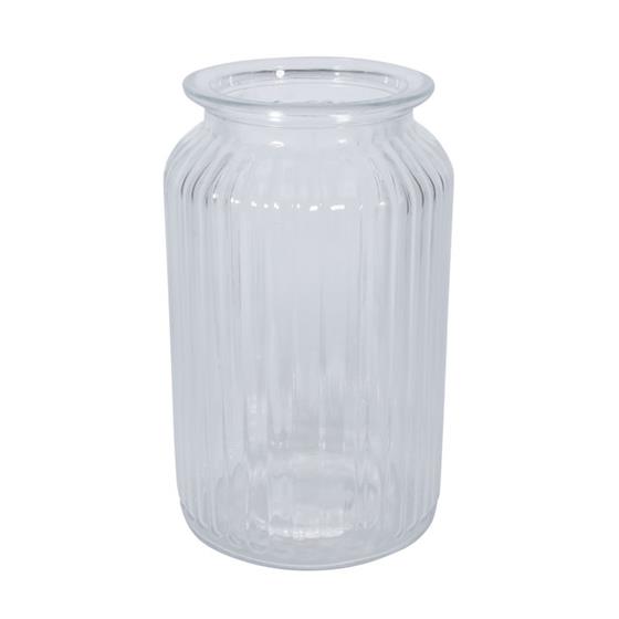 This beautiful ribbed glass vase is a great way to decorate your home with natural colour by filling them with flowers.